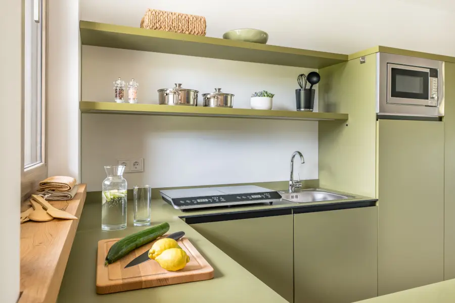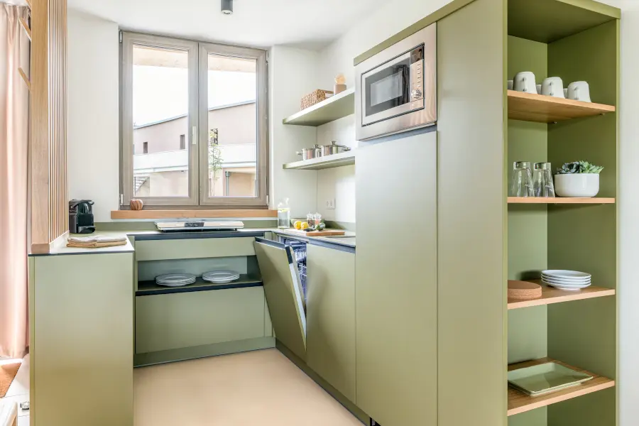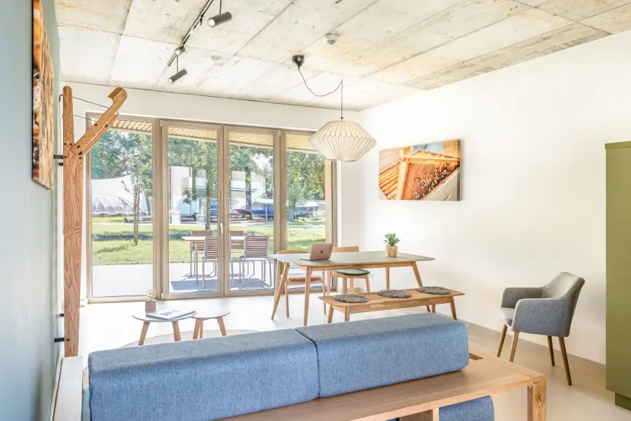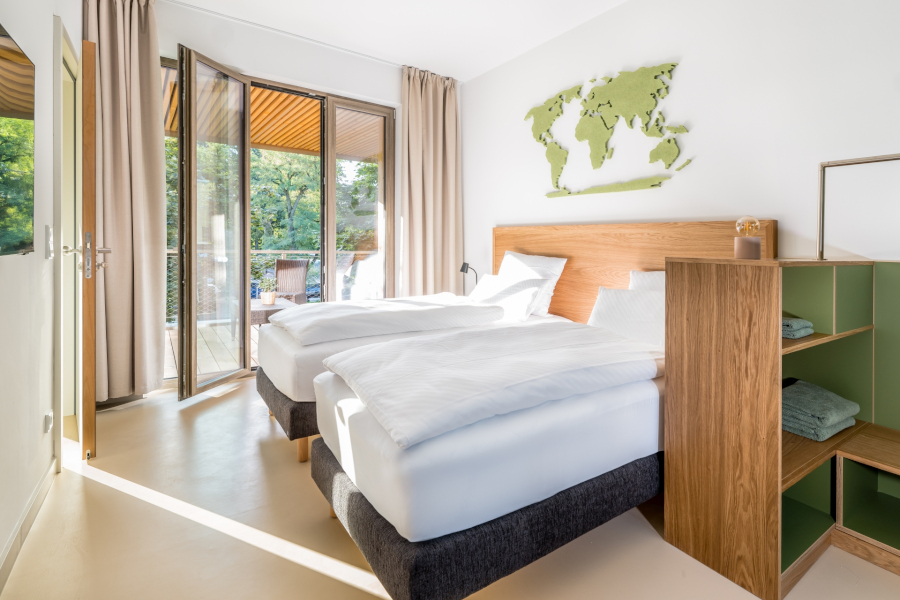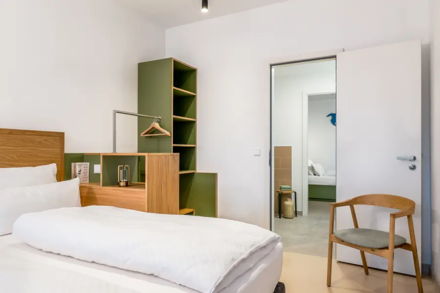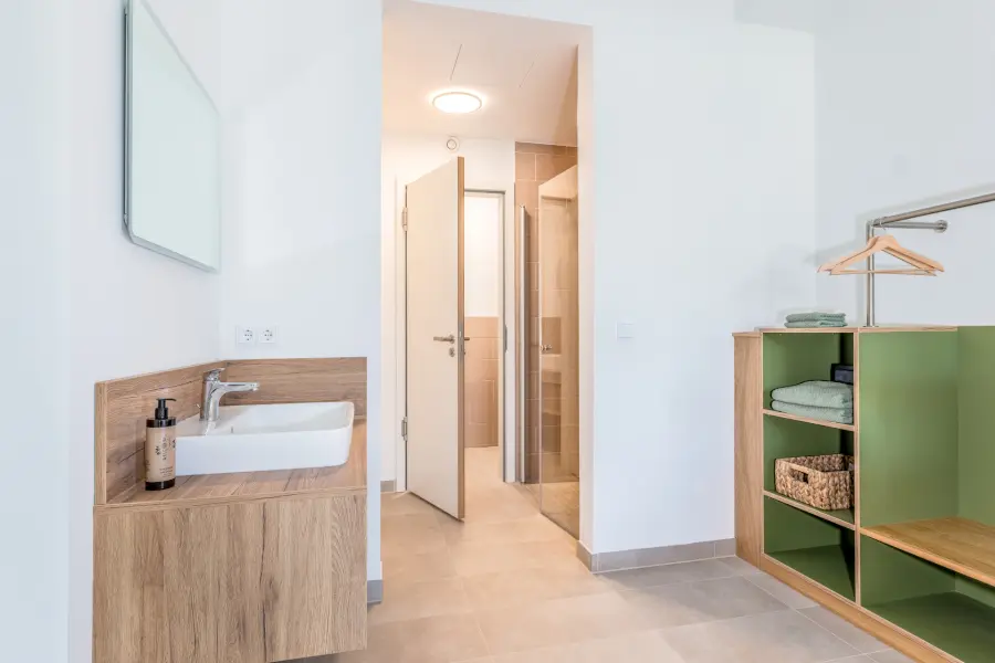 Für deinen Aufenthalt im 360° bieten unsere Apartments die perfekte Balance zwischen Rückzug und Gemeinschaftsgefühl. Sie sind in Wohn- und Schlafbereiche aufgeteilt, ausgestattet mit einem Smart-Living System und bieten stets Zugang ins Freie. Hier kannst du dich zurückziehen und zugleich das Gefühl von Zusammengehörigkeit erleben. Willkommen in deinem Zuhause fernab von Zuhause!