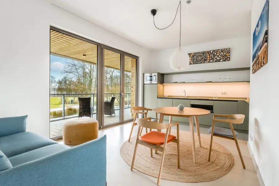 Das Studio ist mit 27 Quadratmeter Wohnfläche unser kleinstes Apartment, bietet aber für 2 Personen den Komfort eines erweiterten Doppelzimmers.