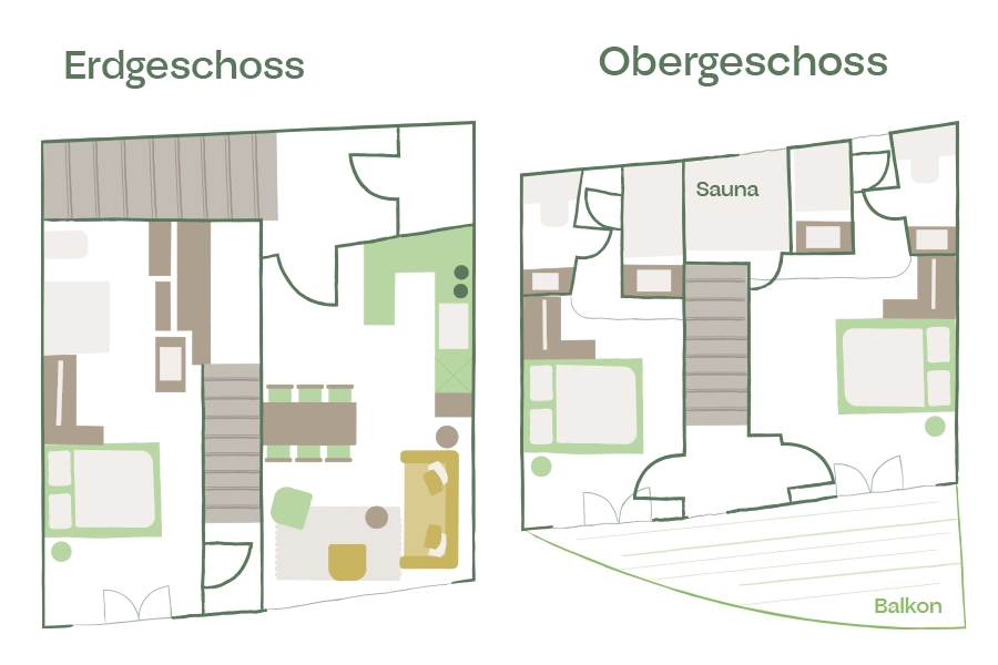 Das Superior Maisonette Apartment bietet 3 Schlafzimmer mit Doppelbett und eigenen Bädern. Neben einem gemütlichen Wohnbereich mit Küche, steht auch eine eigene Sauna zur Verfügung.