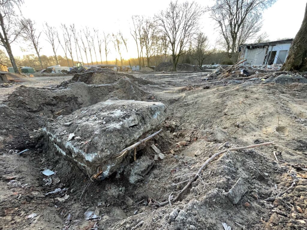 Unser Anspruch war eindeutig. Wir werden das Gelände von seinen Altlasten befreien. Was uns diese Haltung kosten sollte, hätten wir uns nie träumen lassen. Das Wahre entzieht sich oft unserem Blick. So auch in unserem Fall. Lage um Lage wurde Dachpappe entfernt. Im letzten Jahrhundert hat sich keiner die Mühe gemacht, die alten Lagen zu entfernen. Es wurde fleißig auf das Alte weiter aufgebracht. Das Ergebnis waren bis zu 7 cm dicke Teerbahnen. Diese mussten nun in kleine Stücke geschnitten und als Sondermüll durch ein Entsorgungsunternehmen abgefahren werden. Es entstanden die ersten hohen Kosten. Zusätzlich verlangten die Vorschriften die Untersuchung jeder einzelnen zu entsorgenden Baumasse. Die Gutachten allein dafür gehen in die Zehntausende! Die nächste böse Überraschung erwartete uns in den Decken und Wänden. Sie hielten verdeckt alle Baustoffe der vergangen 100 Jahre bereit. Unserem Anspruch folgend wurde hier nicht alles teuer in einem Container entsorgt. Vielmehr wurden ebenfalls durch Gutachter begleitet alle Altlasten getrennt. Es standen an manchen Tagen bis zu 9 Container für verschiedene Stoff auf dem Gelände. Fast alles war Handarbeit. Unsere gesamte Crew vor Ort war mit eingebunden und leistete eine fantastische Arbeit. Allen voran unser Technikchef Kendy Kuschke. Er war an manchen Tagen der Verzweiflung nahe, als weitere alte Baustoffe an Tageslicht kamen. Unsere Haltung war eindeutig – alles für die kommende Generation bereinigen! Doch das Drama ging weiter. Nachdem die Häuser abgetragen waren, wurde auch das Fundament beseitigt. Es wäre ein Leichtes gewesen, es einfach zuzuschütten. Es gab keine Verpflichtung es auszuheben. Nachdem wir die morschen Steine und den nassen Beton ausgehoben hatten, trauten wir unseren Augen nicht. Der schöne Hügel, auf dem das Gebäude stand, war ein Müllberg!